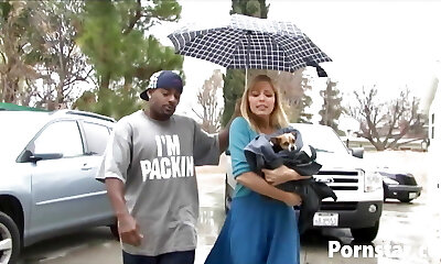 Pale blondie Maia Davis drops her panties to be fucked by a ebony man