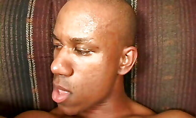 Sweet ass ebony bitch on black couch sucking and fucking black cock hardcore