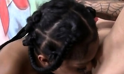 Zoe gives head and gets her dark-hued crotch fucked deep