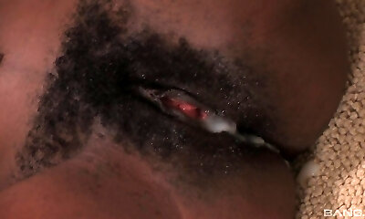 Ebony Hairy Twat Filled Up With Bwc And Hot Cream