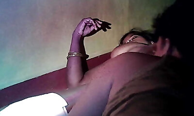 Sexy black Milf with big boobs loves rubbin' clit as she keeps topping man