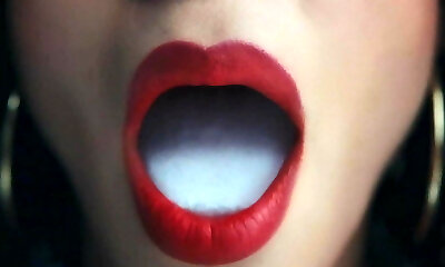 Chick catches Beau's cum in her mouth and swallows